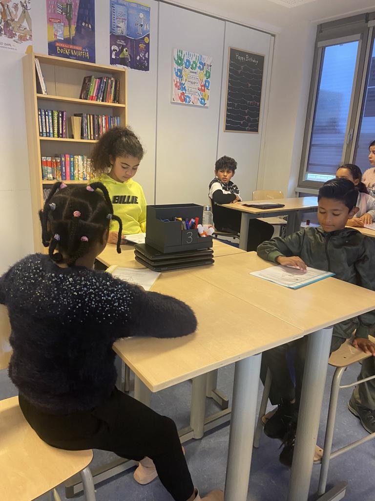 Natuurlijk blijft goed uitrekenen belangrijk. Daarom gebruikt elk kind kladpapier naast de Chromebook, waarop ze hun som helemaal uitschrijven. Zo combineren we digitale mogelijkheden met een stevige rekenbasis.