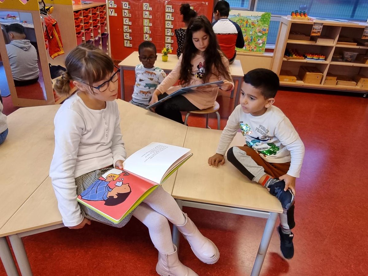 In groep 6 werken de kinderen voor taal en lezen altijd eerst analoog: in het boek of op papier. We vinden het belangrijk dat kinderen blijven lezen en de taalvakken al lezend leren.